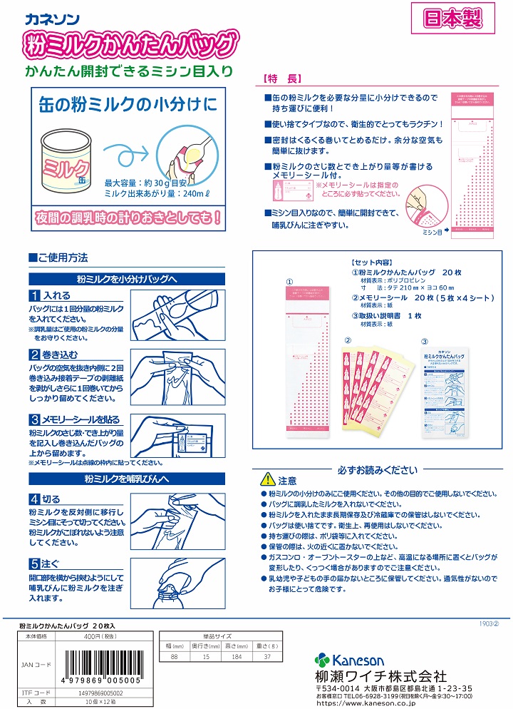 孕嬰專用 > 食品相關 【KANESON】便攜式奶粉儲存袋